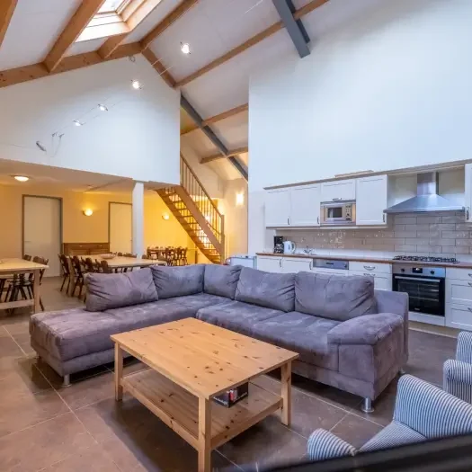 In het hoofdgebouw bevindt zich de gezamenlijke trainingsruimte en is er plek voor ontspanning.